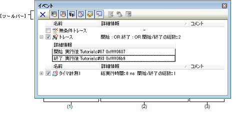 ツールバーのボタンの選択により,表示するイベント種別を限定することができます(「[ツールバー]」参照)。 |