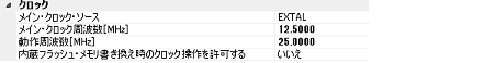 メイン・クロックをEXTAL周波数と内蔵HOCOから指定します。