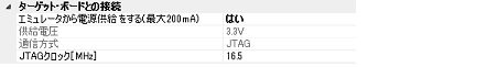 ターゲット・システム上でのJTAG信号の配線長や配線方法によっては,選択したJTAGクロックで通信できない場合があります。このJTAGクロックを下げることによって,通信が出来るようになる場合があります。 |