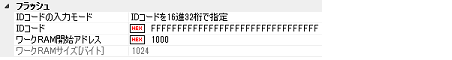 このカテゴリ内の設定は,外部フラッシュ・メモリへダウンロードする場合に必要となります。各プロパティ内の設定についての詳細は,「2.5.2.5 外部フラッシュ・メモリへダウンロードする【E1】【E20】」を参照してください。