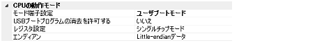 このプロパティは,[モード端子設定]プロパティにおいて[ユーザブートモード]を指定した場合のみ表示されます。ただし,ユーザブートモードで起動する際に,ユーザブート領域上のUSBブートプログラムを消去する必要のないマイクロコントローラの場合は表示されません。