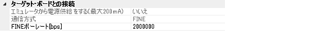 ターゲット・システム上でのFINE信号の配線長や配線方法によっては,選択したFINEボーレートで通信できない場合があります。このFINEボーレートを下げることによって,通信が出来るようになる場合があります。 |