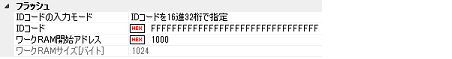 このカテゴリ内の設定は,外部フラッシュ・メモリへダウンロードする場合に必要となります。各プロパティ内の設定についての詳細は,「2.5.2.5 外部フラッシュ・メモリへダウンロードする【E1】【E20】」を参照してください。