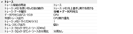 [トレース機能の用途]プロパティにおいて,[リアルタイムRAMモニタ]を指定した場合,プロパティ値は[1]と表示され変更不可状態となります。 |