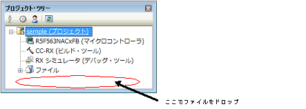 エクスプローラなどからファイルをドラッグし,プロジェクト・ツリー下部の空白部分にドロップしてください。