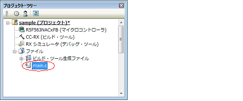 図 2.51 | プロジェクト・ツリー パネル(ファイルmain.c追加後) |