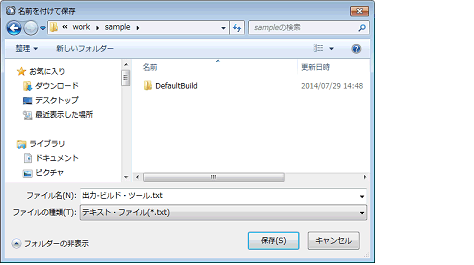 パネル上で[ビルド・ツール]タブを選択し,[ファイル]メニュー→[名前を付けて 出力−ビルド・ツール を保存...]を選択すると,名前を付けて保存 ダイアログがオープンします。