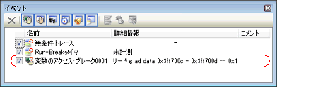 なお,この操作により設定されたブレーク・イベントは,イベント名を“変数のアクセス・ブレーク”としてイベント パネル上で管理されます。