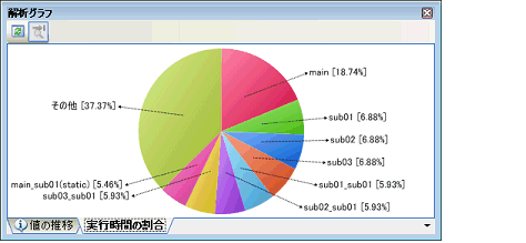実行時間の割合の大きい順にグラフ化の対象となり,ここで指定した数を越える関数については,“その他”としてまとめて表示されます。