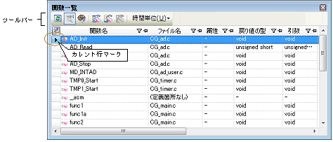 ボタンをクリックすることにより,現在表示可能な(「1.1.2 解析情報の種別」参照)最新の関数情報が関数一覧 パネルに表示されます。