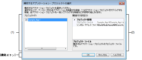 構成するアプリケーション・プロジェクトの選択 ダイアログ