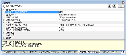 なお,本カテゴリは,[出力ファイル]カテゴリの[ヘキサ・ファイルを出力する]プロパティで[はい]を選択した場合のみ表示します。