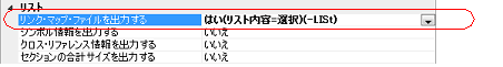 [リンク・マップ・ファイルを出力する]プロパティで[はい(リスト内容=選択)(-LISt)]を選択すると,以下のプロパティを表示します。