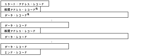 インテル拡張ヘキサ・ファイル(32ビット)は,スタート・リニア・アドレス・レコード,拡張リニア・スタート・アドレス・レコード,スタート・アドレス・レコード,拡張アドレス・レコード,データ・レコード,およびエンド・レコードの6種類のレコード注により構成されます。