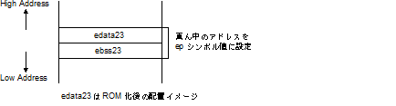 <2> | アドレスの小さい方から,ebss23,edata23セクションの順で配置されている場合 |