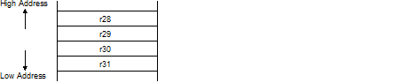 たとえば,r28〜r31を退避する場合は,以下の並び順となります。