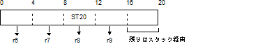 r6 は,ST20と連続した位置のメモリ上に配置する必要がないのでストアしません。
