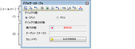 各ボタンの機能についての詳細は,「(2) デバッグ・ツールバー」を参照してください。