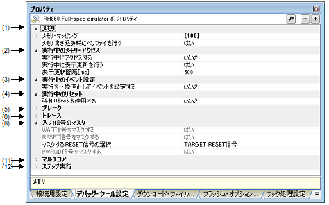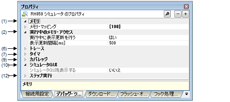 プログラム実行中に,メモリ パネル/ウォッチ パネルの表示内容を更新する間隔を100 ms単位で指定します。 なお,このプロパティは,[実行中に表示更新を行う]プロパティにおいて[はい]を選択した場合のみ表示されます。 |