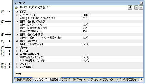 [デバッグ・ツール設定]タブでは,次に示すカテゴリごとに詳細情報の表示,および設定の変更を行います。