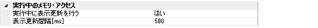 プログラム実行中におけるメモリ・アクセス(リアルタイム表示更新機能)に関する設定を行います。