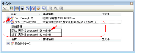 パフォーマンス計測開始イベント/パフォーマンス計測終了イベントの設定例(逆アセンブル パネルの場合)