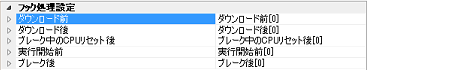 [フック処理]カテゴリ内の各プロパティは,フック処理を行うタイミングを示し,プロパティ値の“[ ]”内は,現在指定されている処理の数を示します(デフォルトで設定されているフック処理はありません)。