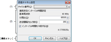 このダイアログで設定した送信チャネルの設定をCAN受信デバッグ パネル【Full-spec emulator】【E1】【E20】の[送信チャネル設定]エリアに反映します。 |