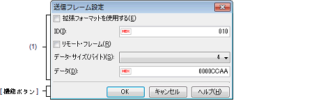 このダイアログで設定した送信フレームの設定をCAN受信デバッグ パネル【Full-spec emulator】【E1】【E20】の送信フレーム設定エリアに反映します。 |