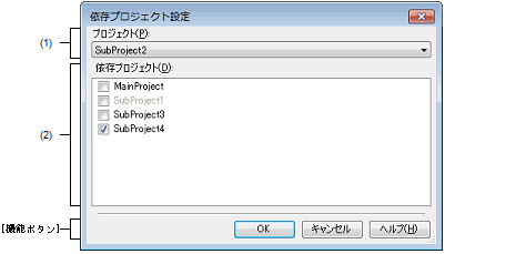 ビルド実行時に依存プロジェクトとして参照するプロジェクトをチェック・ボックスにより選択します。