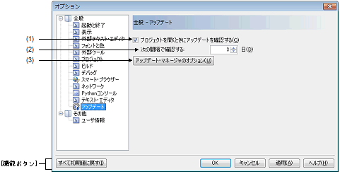 オプション ダイアログ([全般 - アップデート]カテゴリ)