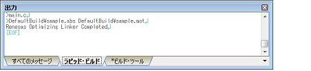 ビルドの実行結果(ビルド・ツールの出力メッセージ)は,出力 パネルの各タブに表示します。