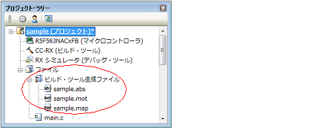 ビルド・ツールの生成ファイルは,プロジェクト・ツリー パネルのビルド・ツール生成ファイル・ノードに表示します。