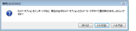 ダイアログ上で[はい]をクリックすると,ビルド・オプションのインポート ダイアログがオープンします。
