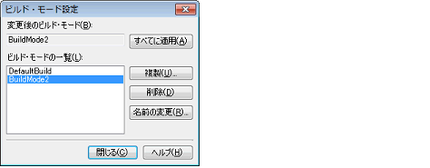 現在設定中のビルド・モードを削除した場合は,“DefaultBuild”が設定されます。