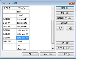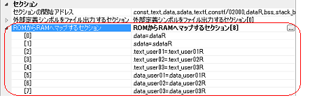 [ROMからRAMへマップするセクション]プロパティ(セクション設定後)