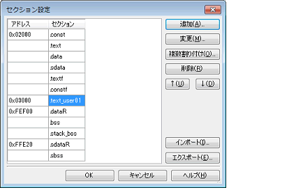 他のROMセクションについても同様に,アドレスとセクション名の設定を行います。
