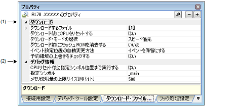 なお,このプロパティは,選択しているマイクロコントローラがダウンロード完了後常にCPUをリセットする場合は表示されません。