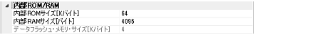 デフォルトで,選択しているマイクロコントローラの内部ROM/RAMサイズが設定されます。