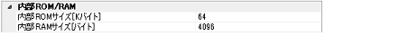 デフォルトで,選択しているマイクロコントローラの内部ROM/RAMサイズが設定されます。