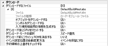 デフォルトの設定では,ダウンロード後に自動的にCPUをリセットし,指定シンボルまで実行します。この動作が不要な場合は,[ダウンロード後にCPU をリセットする]プロパティ,および[CPUリセット後に指定シンボル位置まで実行する]プロパティにおいて[いいえ]を選択してください。 |