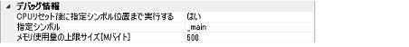使用したメモリ・サイズがここで指定した上限値を越えた場合,上限値の1/2以下のメモリ・サイズになるまで読み込んだデバッグ情報を破棄することでメモリを開放します(メモリ不足が発生する場合,上限値を小さくすることで改善される可能性があります)。