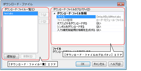 なお,各エリアの見方,および機能についての詳細は,ダウンロード・ファイル ダイアログの項を参照してください。