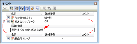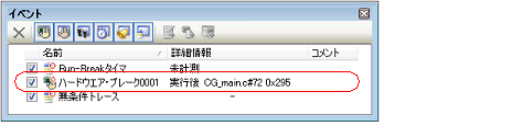 また,イベント パネルにおいて,ハードウエア・ブレーク・イベント(実行系)/ソフトウエア・ブレーク・イベント(実行系),または組み合わせブレーク・イベント【E1】【E20】の詳細情報内の実行系イベントとして管理されます(「2.15 イベントの管理」参照)。