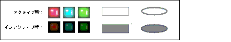 入力シミュレーション・モード時,接続した端子の出力状態(アクティブ/インアクティブ)を2種類のビットマップ,または図形でリアルタイムに表示します。