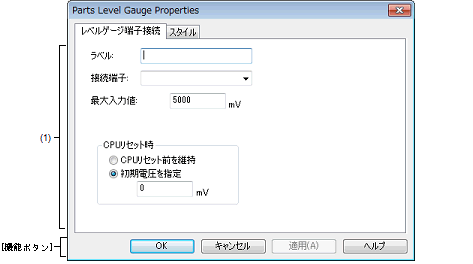 入出力パネル ウインドウの接続部品の一つであるレベル・ゲージの端子接続情報の設定,変更を行います。