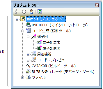 プロジェクトの構成要素(マイクロコントローラ,設計ツール,ビルド・ツールなど)をツリー形式で表示します。
