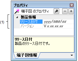 プロジェクト・ツリー パネルで選択した[端子図]に対応した情報(製品情報)の表示を行います。