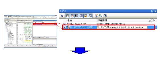 イベント・パネルが表示されるので[ハードウエア・ブレーク0001]を選択してください。 |