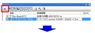 イベント・パネルから[ハードウエア・ブレーク1]が削除されたことを確認してください。 |
